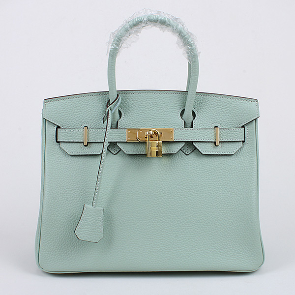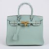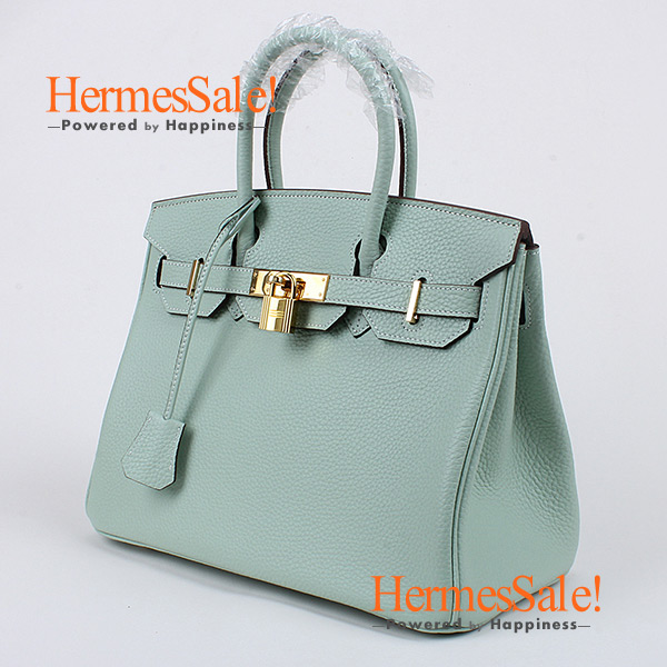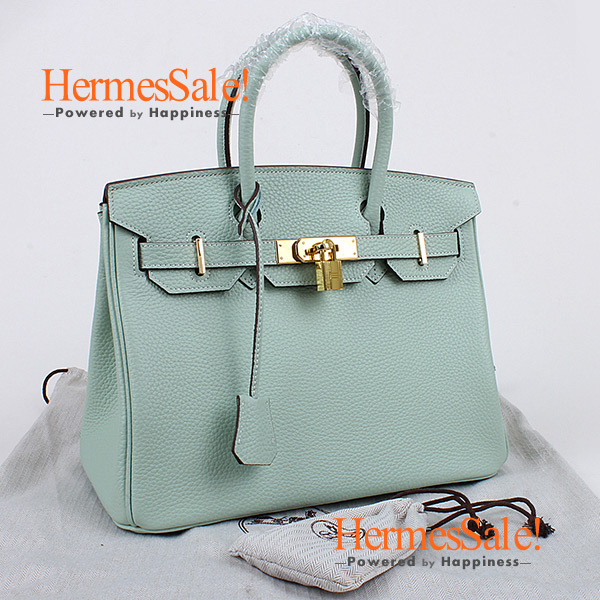 Hermes Birkin 30cm Aqua Clemence with Gold Hardware is accompanied by Hermes padlock, Key, and dust bag.