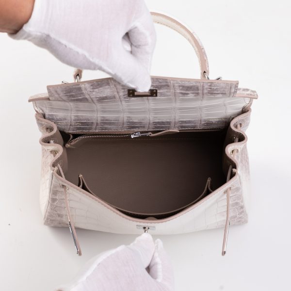 Kelly 25 Retourne Bag Matte Himalaya Niloticus Crocodile Palladium Hardware is accompanied by Hermes box(sometimes we may not match the box because of custom risk) and dust bag.