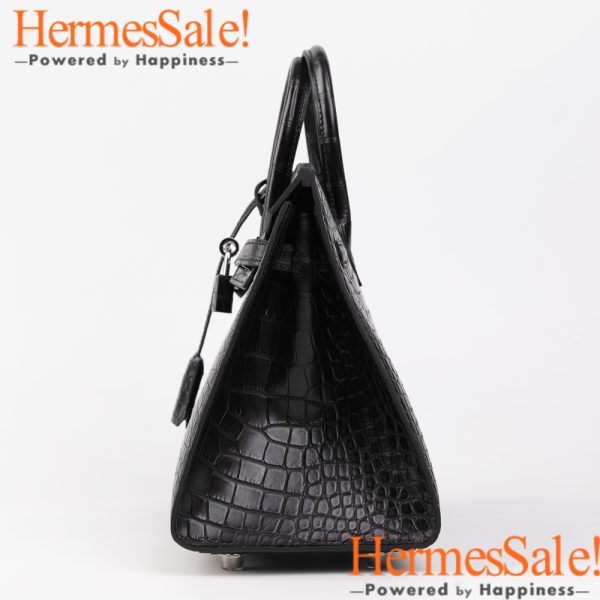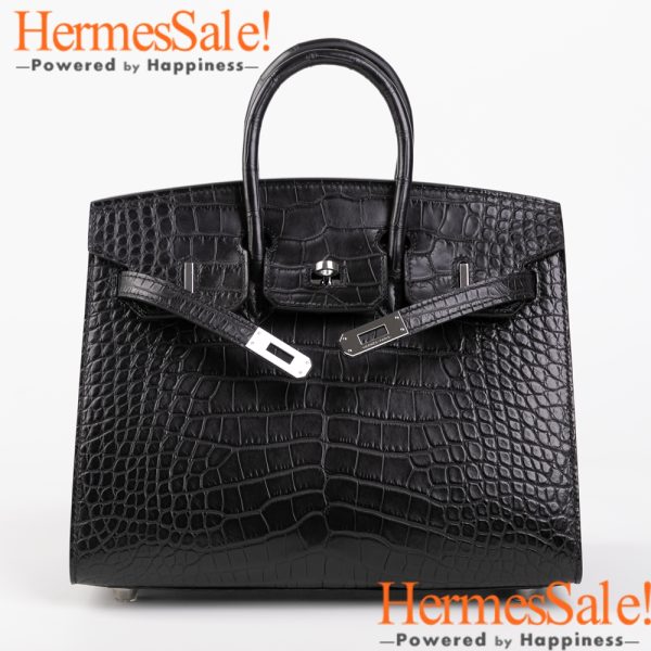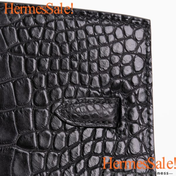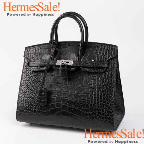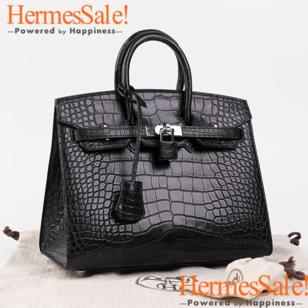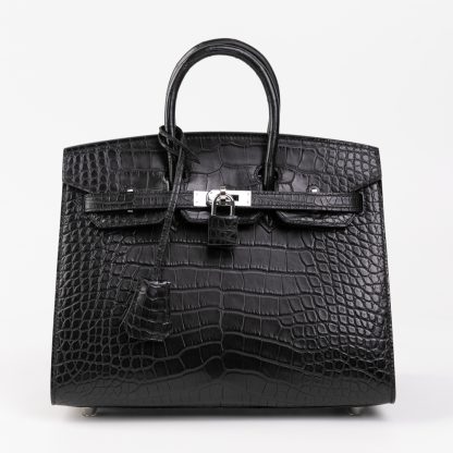 Sellier Birkin 25 Black Matte Alligator Crocodile Leather bag with PHW