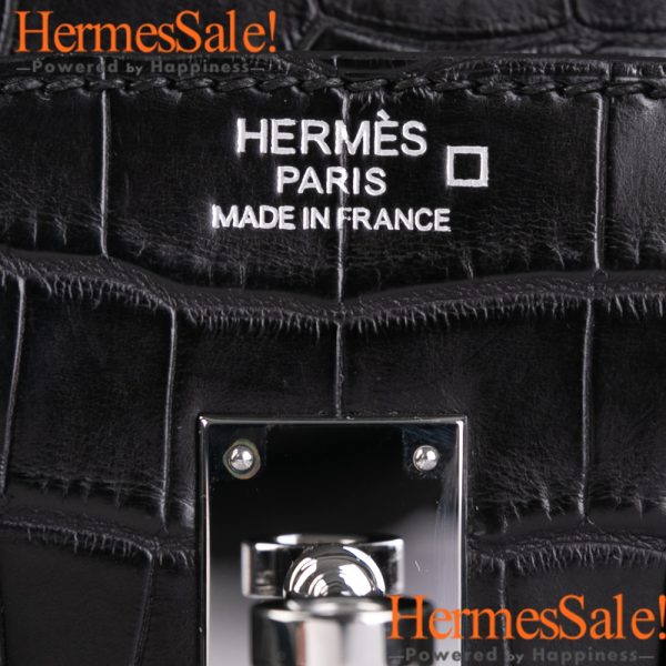 Sellier Birkin 25 Black Matte alligator Crocodile Leather bag with PHW comes with Hermes dust bag, care booklet and cards, paper shopping bag, ribbon and rain coat.